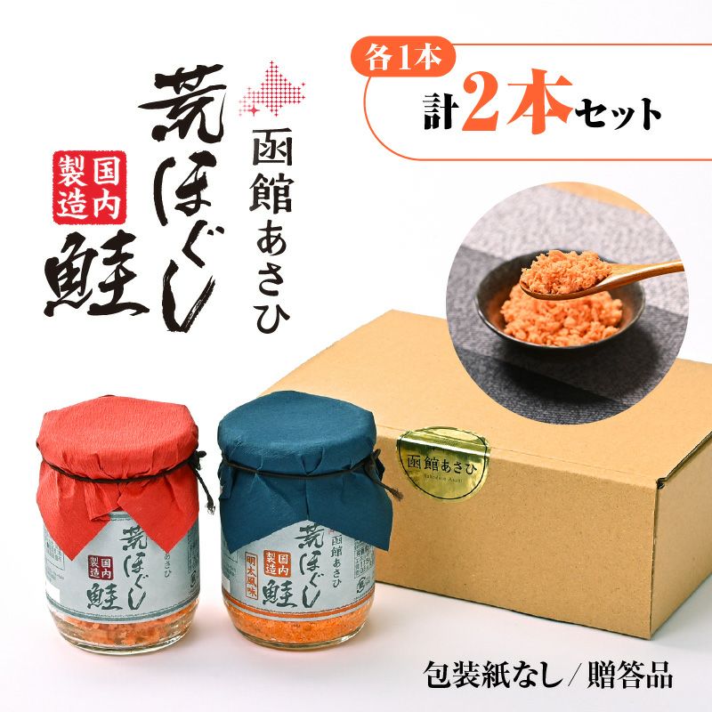 函館あさひ 荒ほぐし鮭100g・荒ほぐし鮭 明太風味 100g【各1本:2本セット】(包装紙なし/贈答品)