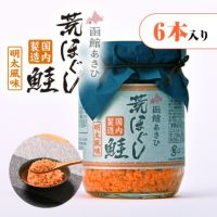 プチプチで旨辛味の魚卵と荒ほぐし鮭を混ぜ合わせた、ご飯が進む1品です。天然白鮭を目視・手作業で骨や皮、血合いを取り除き、荒めにほぐし、鮭本来の旨味と食感を残しています。ベースは旨塩味ですが、自社で加工・処理した、明太風味のスケソウ卵・カラフトシシャモ卵を混ぜ合わせ、旨辛な風味だけでなく、プチプチ食感と魚卵の旨味も楽しめます。ご飯やおにぎりはもちろん、卵焼きもおススメです。日頃よく使う・配る方にオススメの6本セットです。 ※人力で骨等除去しているため、まれに骨が入っていることがございます。お召上がりの際はご注意ください。また、血合いや皮の一部分が入ることがございますが、品質には問題ございませんので、安心してお召し上がりください。