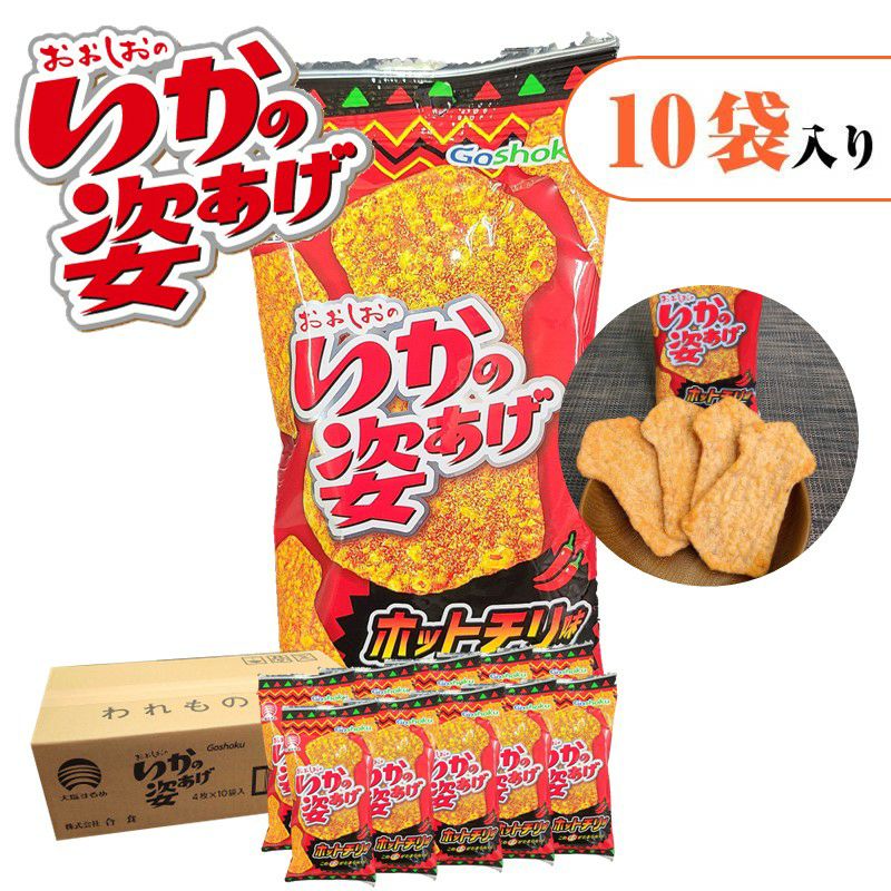 ロングセラーのいかの姿あげを「ホットチリ味」に仕上げました。ほど良い唐辛子の辛さと香辛料が後引くおいしさです。後引くからさがやみつきになります!おやつ・おつまみの両方にピッタリな商品です。
