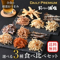 独自の製法でおいしさと減塩を両立させた「おいしい減塩」と素材本来のうまみを活かす「デイリープレミアム」の計11種からお好きなアイテムを自由に選べる3袋セットです。ご自身の好みに合わせた組み合わせをお楽しみください。ポスト投函なので不在時の受け取りも安心!※他商品と同時に購入される場合は通常の宅配便でのお届けとなります。【おいしい減塩】■さきいか皮付きのままイカを味つけし香ばしく焼きあげ、食べやすくさきいかに仕上げました。定番のさきいかを独自の製法で素材本来のおいしさと減塩を両立させ、塩分を35%(日本食品標準成分表2020「さきいか」対比)カットしました。第4回JSH減塩食品アワード金賞(2018年)を受賞した商品です。商品に使用している「ポリグルタミン酸」は納豆のネバ成分です。■くんさき肉厚のイカを、桜チップで燻製にかけて香り豊かに仕上げました。肉厚なので食べ応えのある商品です。定番の燻製さきいかを独自の製法で素材本来のおいしさと減塩を両立させ、塩分を35%(日本食品標準成分表2020「いか加工品・くん製」対比)カットしました。第4回JSH減塩食品アワード金賞(2018年)とJSH減塩推進10年アワードを受賞した商品です。商品に使用している「ポリグルタミン酸」は納豆のネバ成分です。■焼き子持ちししゃも子持ちししゃもを独自製法でおいしく焼き上げています。丸ごと食べられて、カルシウムたっぷりです!(770.0mg/100g当たり)独自の製法で素材本来のおいしさと減塩を両立させ、塩分を25%(当社「焼き子持ちししゃも」対比)カットした商品です。商品に使用している「ポリグルタミン酸」は納豆のネバ成分です。日本高血圧学会の「JSH減塩食品リスト」に掲載されている商品です。■やわらかいか天ぷらいかの胴部分を伸し、食べやすいスティック状にカットし、衣をつけて揚げました。独自の製法で素材本来のおいしさと減塩を両立させ、塩分を30%(当社「やわらかいか天ぷら」対比)カットした商品です。商品に使用している「ポリグルタミン酸」は納豆のネバ成分です。■いかくん肉厚ないかを燻製してスライスしました。ソフトな食感とほどよい酸味です。たんぱく質たっぷり!(100g当たり22.9g)【デイリープレミアム】■あたりめ干したいかを焼き上げ、食べやすく裂きました。■くんさきいかを燻製し、しっとり柔らかく仕上げました。■皮付きさきいか皮付きのいかを焼き上げ、食べやすく裂きました。■辛子明太子さきいかさきいかにピリ辛の明太子を絡めました。かねふくの辛子明太子使用。■おだしの香るさきいかさきいかに鰹節と昆布の旨みを合わせました。鰹節・宗田節粉末を振りかけることで香りが引き立っています。■焼き子持ちししゃも 七味唐辛子味香り高い七味でピリ辛味に焼き上げました。八幡屋礒五郎の七味唐辛子使用。