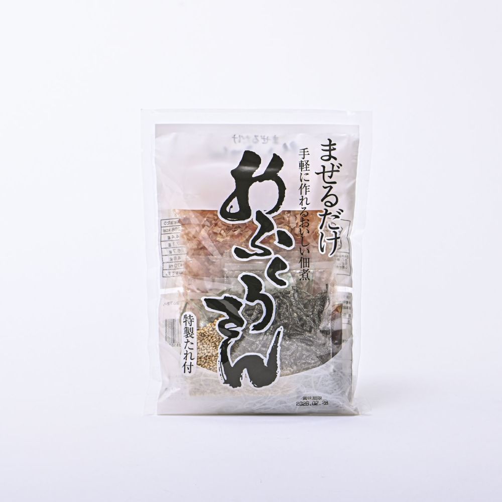 煮干いりこ、かつお削りぶし、味付け昆布、ごま、特性調味だれがセットになった手づくり佃煮セットです。