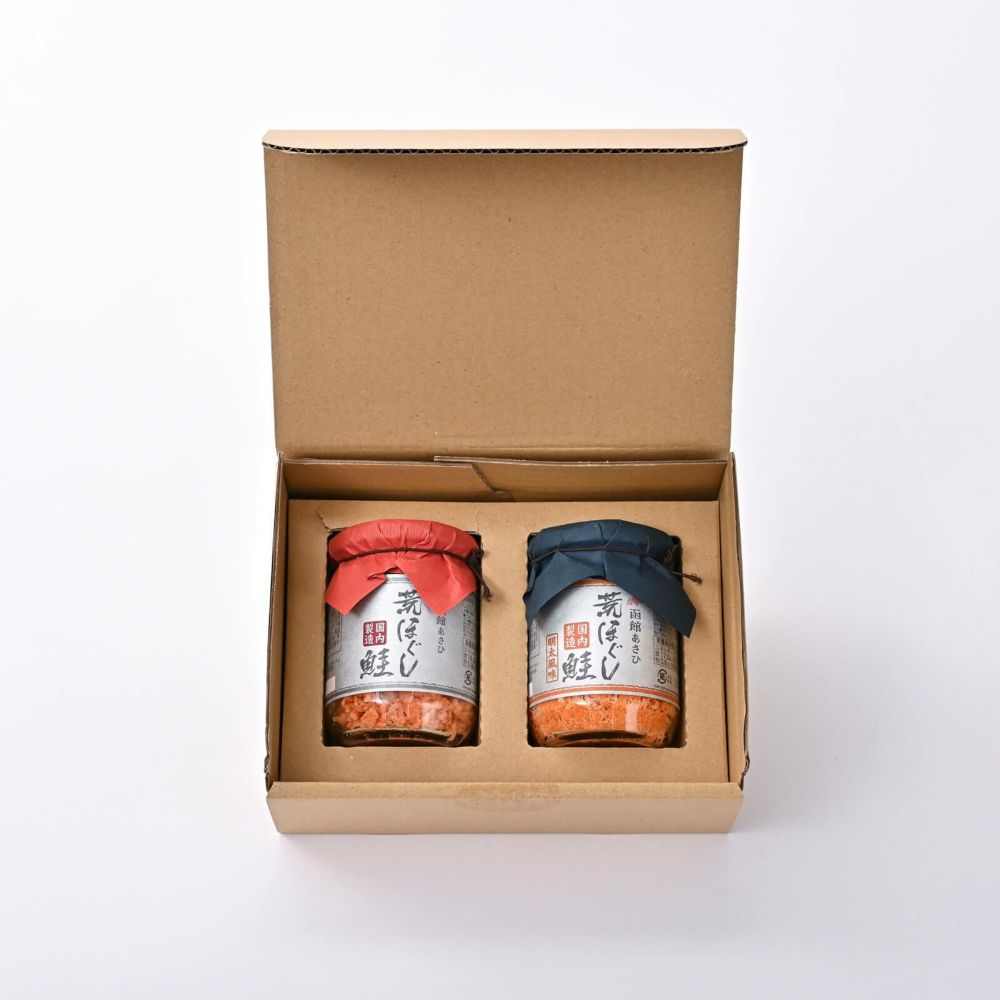 函館あさひ 荒ほぐし鮭100g・荒ほぐし鮭 明太風味 100g【各1本:2本セット】(包装紙あり/贈答品)